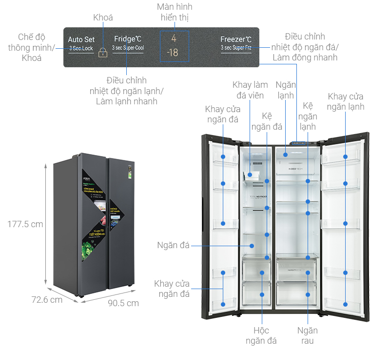 Tủ lạnh Aqua Inverter 646 lít Side By Side AQR-S682XA(SLB)